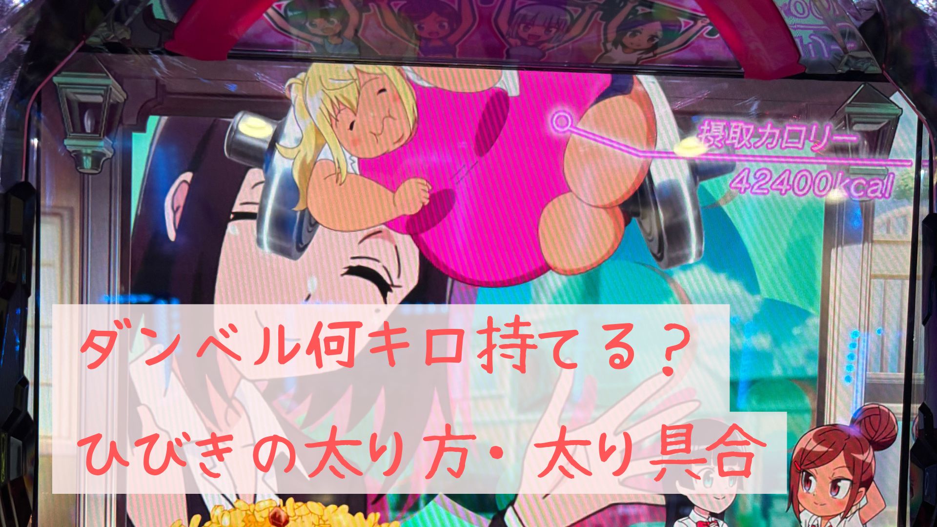 スマスロ『ダンベル何キロ持てる?』は、「ひびきの太り方」というユニークな演出でCZ期待度を視覚的に表現しています。